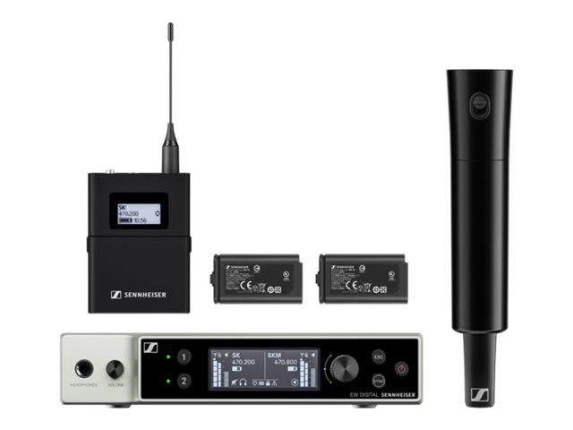 The Sennheiser EW-DX SK / SKM-S Base Set is a reliable wireless audio delivery system, designed to meet the demands of professional audio environments. This set includes a robust EW-DX EM 2 rackmount receiver and both handheld and bodypack transmitters, ensuring flexibility for various applications. The E Ink display provides clear visibility, and the Bluetooth LE wireless interface enhances connectivity options. This base set is equipped with essential accessories for seamless integration into your setup, including rod antennas, a microphone clamp, and rubber feet. It supports a wide frequency response from 20 to 20,000 Hz and complies with AES-256 standards, ensuring secure audio transmission. With its durable design suitable for temperatures ranging from -10°C to 55°C, this system is built for longevity and performance in a variety of environments.