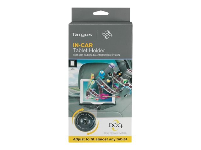 The new in car tablet holder from Targus is designed to turn your tablet into a mobile entertainment system which will keep your back-seat passengers entertained on those long car journeys. The Targus in car tablet holder is designed to easily adjust and secure most tablets from 7" - 10.1" to your car headrest, allowing you to mount your tablet at a comfortable viewing angle. The adjustable cradle utilizes a state of the art BOA lacing system which locks into position to hold your tablet safe and secure. An adjustable strap fits onto nearly all types of car headrest. The low profile BOA control mechanism combined with the sleek mount design means that the tablet holder will fit neatly into a backseat pocket for a clutter-free car.