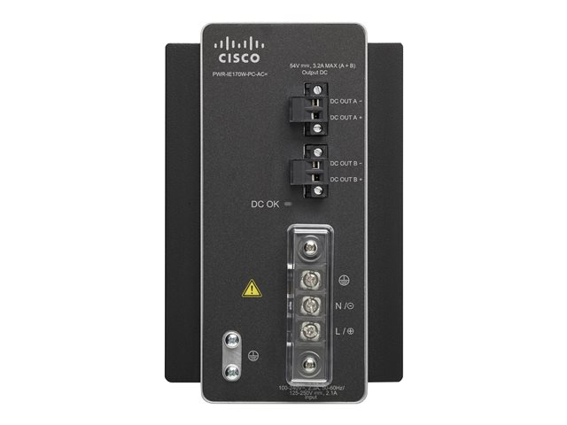 Produktbeskrivelse Cisco AC-DC Power Module for POE solution - strømforsyningsadapter - 170 Watt Enhedstype Strømforsyningsadapter - monterbar på DIN rail Indgangspænding AC 90 - 264/ DC 106 - 300 V Udgangspænding 54 V Strømkapacitet 170 Watt Designet for Industrial Ethernet 4000 Series -