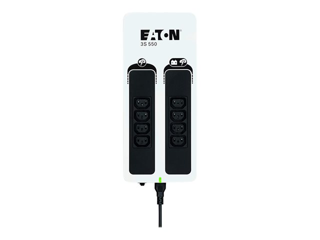- Eaton 3S leverer batteribackup under strømafbrydelse og avanceret overspændingsbeskyttelse for at forhindre skader fra lynnedslag eller utilsigtet overspænding på nettet